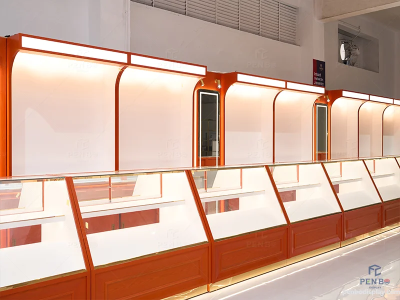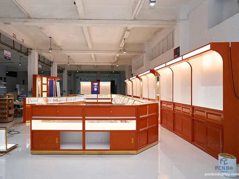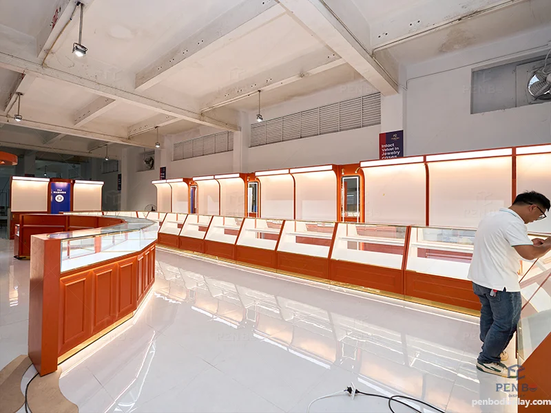 Luxury Custom Jewelry Display Cases with Glass Counters and Wall Cabinets